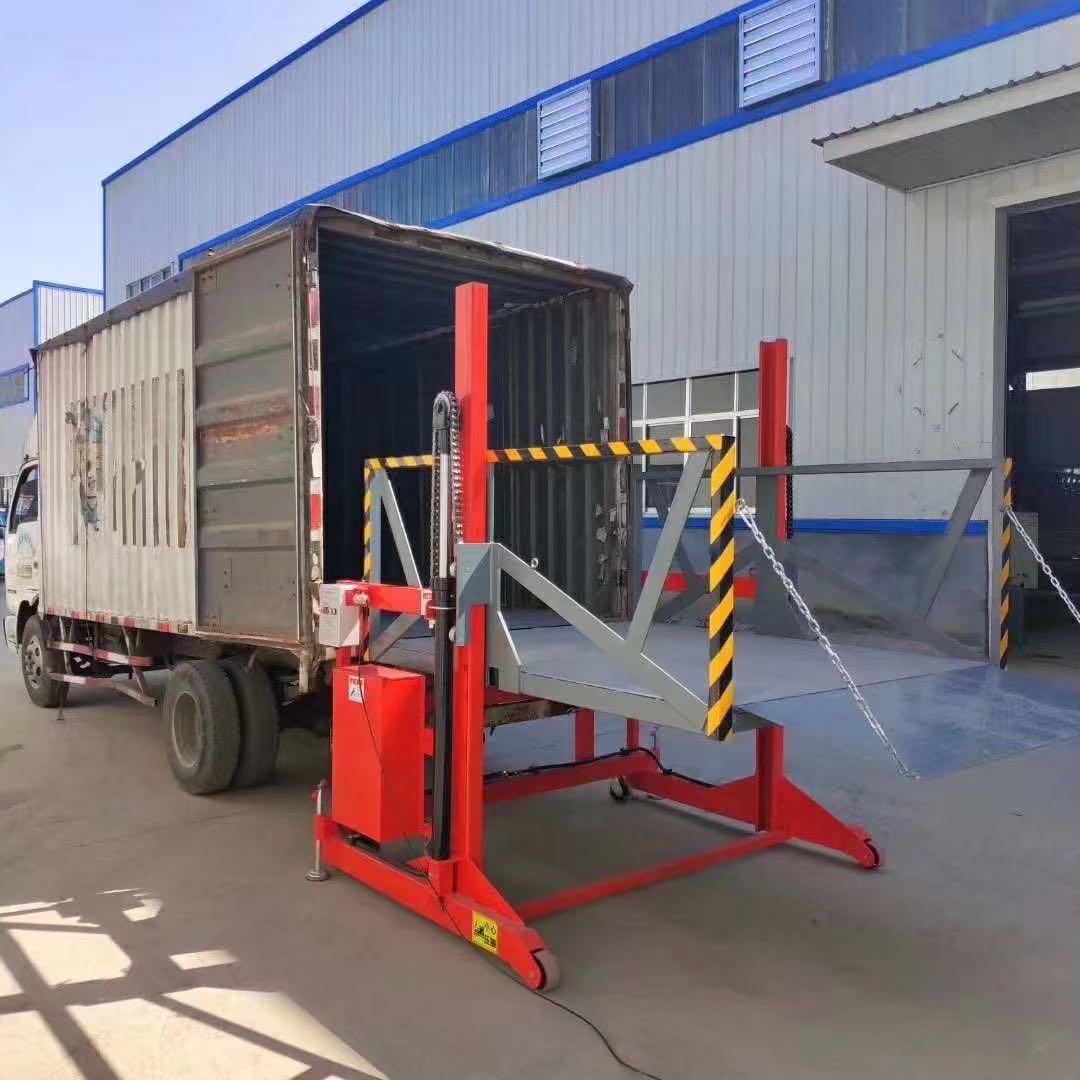 移動(dòng)式裝卸貨平臺用于配合貨車裝卸貨物。設(shè)備上的翻板對接貨車尾部,可以提升2噸的貨物,底部輪子移動(dòng)行走, 屬于流動(dòng)式的登車橋,大大利用工廠實(shí)際使用空間,提高裝卸貨的效率,減少人工成本。